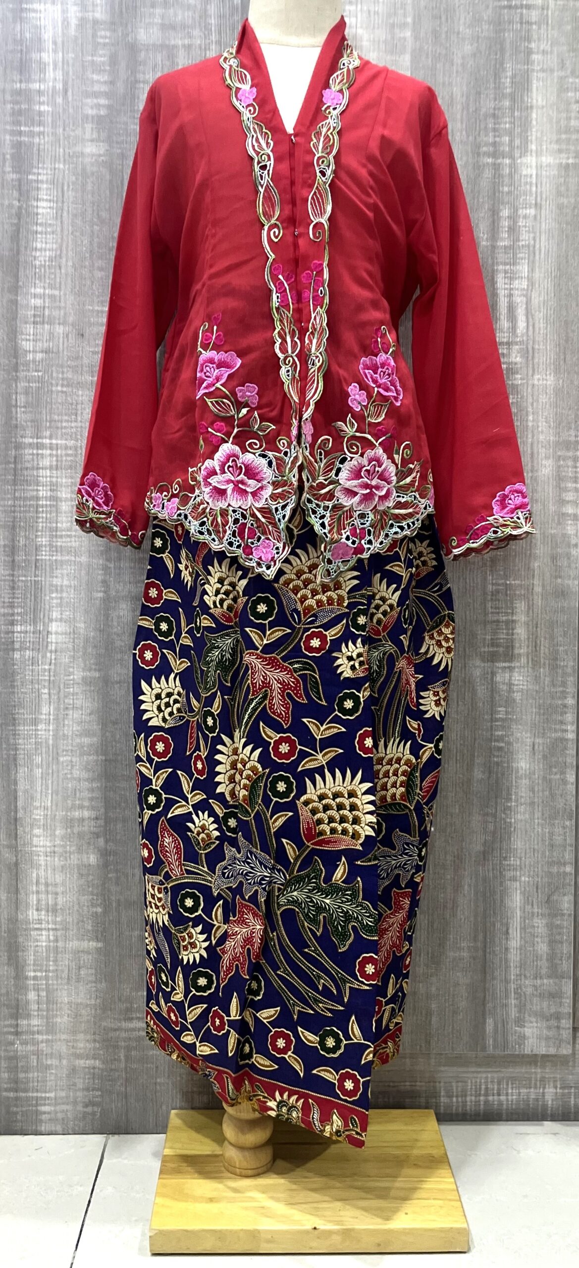 Design: Flora Motif On Red Kebaya